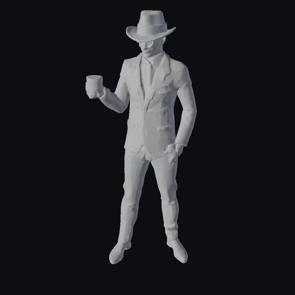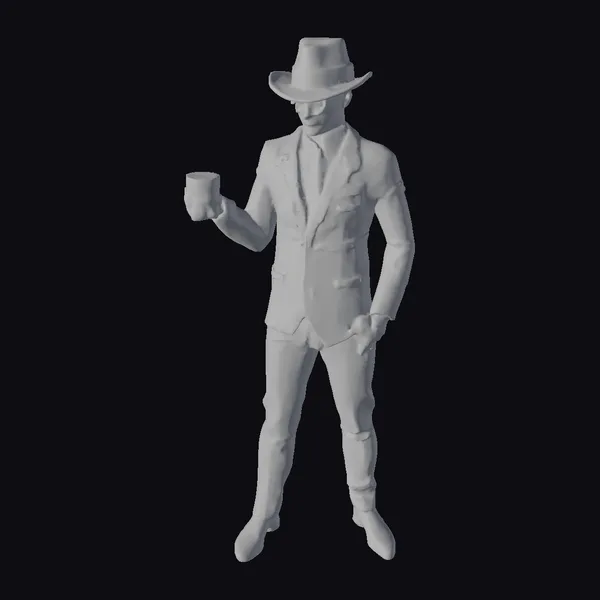 The Model “1920s Gangster with Drink” is also available upon request in many other 3D formats, such as 3MF, BLEND, FBX, OBJ, USDZ and others, making it easy to integrate into your project.
