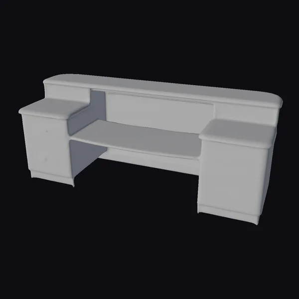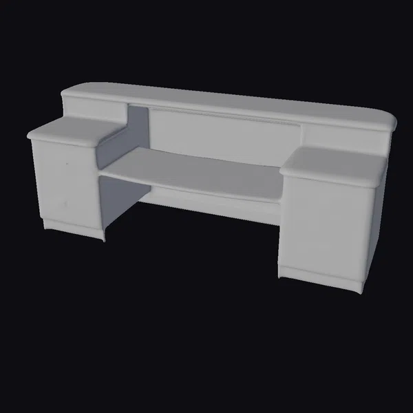Rendered in exquisite detail, this 1980s convenience store cashier counter invites you to explore its retro charm. The long, curved countertop boasts a rich, wooden texture, complemented by the cream-colored base and matching wooden accents. Two built-in counters on either side, complete with small drawers or compartments, add functionality to this vintage piece. The open shelf in the middle provides additional storage space. Perfect for designers, architects, and creatives looking to infuse their projects with a dose of nostalgia, this model is ideal for use in games, 3D printing, VR/AR experiences, animation, and design projects.