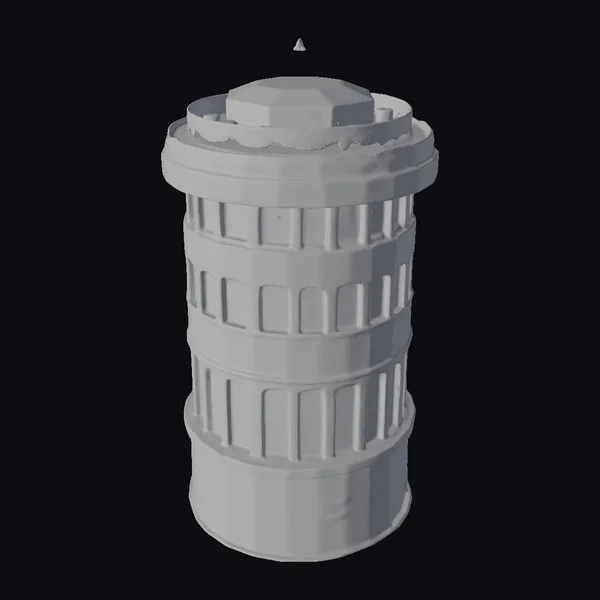 Standing tall with a robust presence, this 20-floor concrete silo model showcases a cylindrical design with a series of horizontal bands encircling its body, each adorned with rows of small windows that punctuate its facade. The surface texture is rough and weathered, with visible signs of aging and wear, lending it an air of authenticity. The structure’s design allows for versatile applications in various projects, from architectural visualizations and video games to film and animation. Its realistic appearance makes it an excellent choice for designers and creators looking to add a touch of industrial realism to their work.