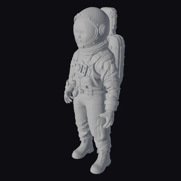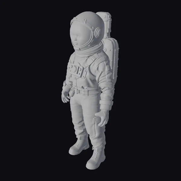 The astronaut’s pose is relaxed yet vigilant, as if she’s poised to spring into action at a moment’s notice. The suit itself is a marvel of detailed design, with visible buckles, straps, and panels that evoke a sense of realism. The textures are rich and varied, from the smooth, worn fabric to the rough, sandblasted metal. The lighting is soft and even, with subtle shadows that add depth to the overall image. This model would be perfect for use in games, animation, or VR/AR experiences where a realistic, sci-fi aesthetic is desired.