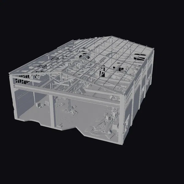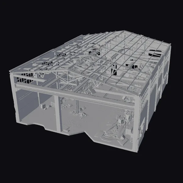 Perched at a dynamic angle, the derelict warehouse reveals its intricate network of rusted beams and crumbling concrete. The partially collapsed roof and walls, speckled with stains of rust and decay, invite the eye to explore the depths of neglect. Scattered debris and remnants of a bygone era litter the floor, adding to the sense of abandonment. Textured surfaces and precise detailing bring this forsaken structure to life, making it an ideal asset for projects seeking an air of realism and grit. Whether you’re crafting a post-apocalyptic landscape, a gritty urban scene, or a narrative of decay and rebirth, this model provides a rich foundation. Its potential applications span gaming environments, architectural visualizations, film and animation backdrops, and virtual reality experiences.