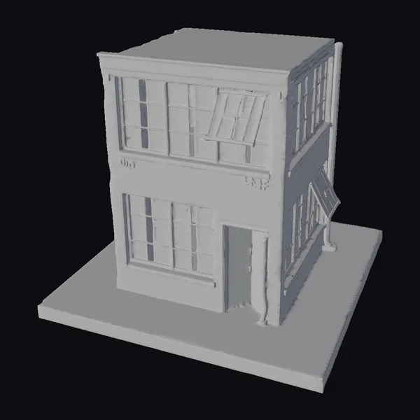 Perched on a concrete slab, this meticulously detailed model of an abandoned industrial building invites you to explore its every nook. The two-story structure boasts a facade that masterfully blends worn brick and plaster, with a hint of faded signage that whispers tales of its past. Shattered windows and a creased metal roof contribute to the authentic look of disrepair. The model’s textures and lighting evoke a sense of stillness, as if time has paused within its walls. Ideal for use in projects that demand a touch of realism and history, such as architectural visualizations, games, or animations seeking an urban decay aesthetic.