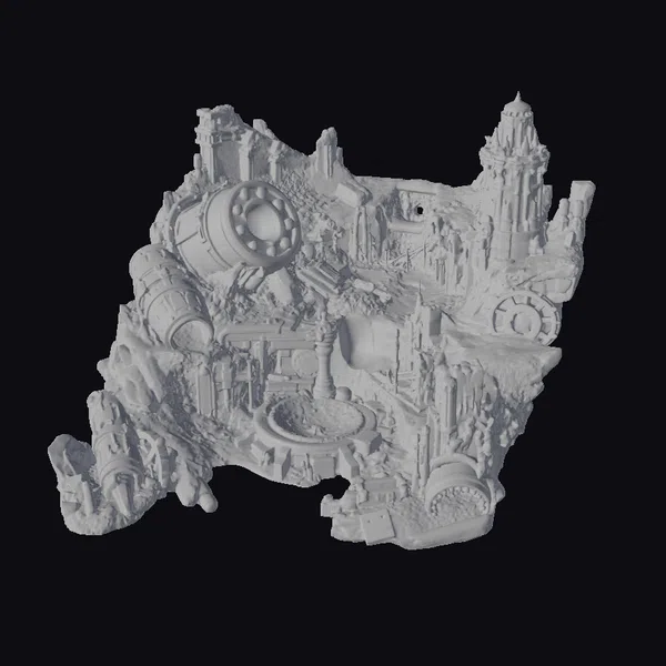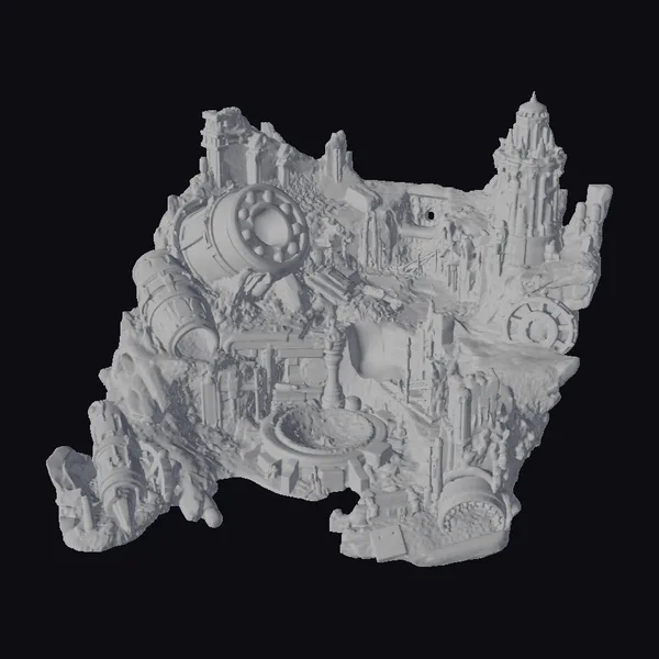 Positioned in a state of arrested decay, this industrial machine core showcases a mesmerizing blend of mechanical and architectural elements. The model’s pose highlights its rugged, battle-hardened exterior, complete with a latticework of pipes, valves, and machinery that suggest a once-critical role in industrial operations. Turquoise accents add a pop of color against the predominantly dark, metallic palette, hinting at a functional past. Textures are richly detailed, with evidence of wear and tear that adds to the narrative of abandonment. The lighting accentuates the model’s topography, casting shadows that deepen its three-dimensional appearance. This model is perfect for projects requiring a gritty, sci-fi aesthetic, such as game environments, animations, or architectural designs that seek to incorporate industrial elements.