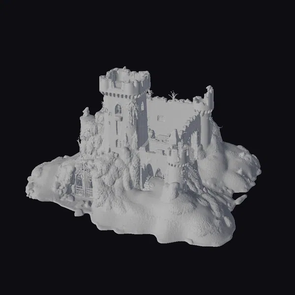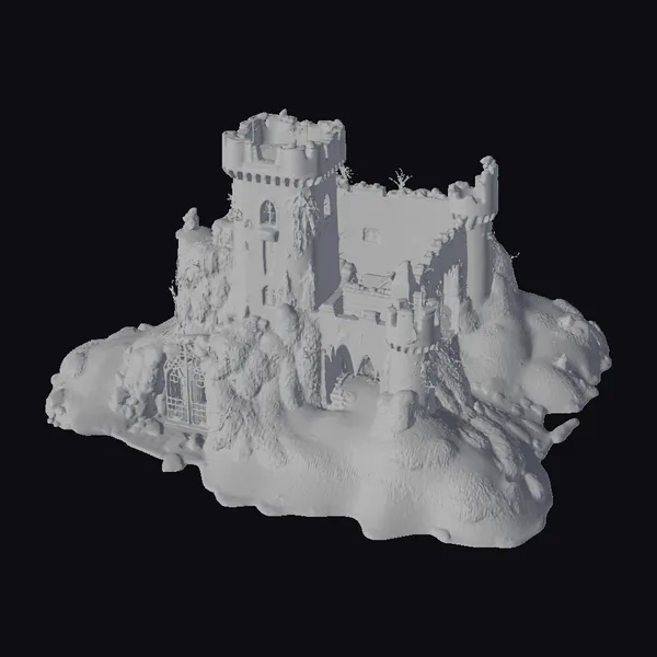 This abandoned medieval castle, perched atop a rugged rocky hill, presents a dramatic sight. The structure’s white stone façade is weathered to a soft gray, with crumbling battlements and broken stone walls that speak to its age and neglect. Vines crawl up the walls, as if trying to claim the castle as their own. The massive iron gates hang crookedly, a grim reminder of the castle’s dark past. The castle’s design is quintessentially gothic, with pointed arches and ribbed vaults adding to its mystique. The partially collapsed towers and ruined state evoke a sense of melancholy and foreboding. Ideal for use in games, 3D printing, VR/AR experiences, animation, and architectural design projects, this model brings a touch of medieval mystique to any project.