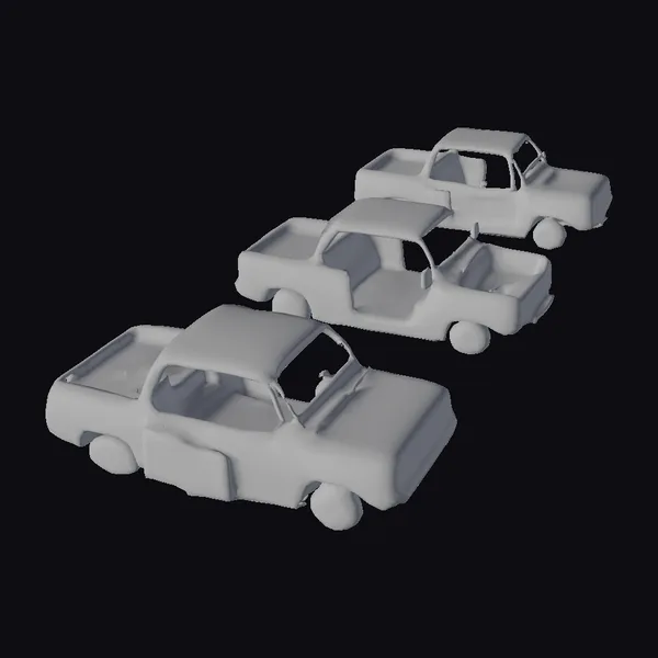 The Model “Abandoned Pickup Trucks Trio” is also available upon request in many other 3D formats, such as 3MF, BLEND, FBX, OBJ, USDZ and others, making it easy to integrate into your project.