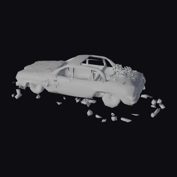 Positioned dynamically, as if in mid-crash, this post-apocalyptic car wreck exudes a sense of desolation. The vehicle’s body, once sleek and shiny, now wears a cloak of rust and decay, with vibrant green moss sprouting from its hood and roof. Shattered glass and debris scatter around it, telling a story of a world left behind. The model’s intricate details—from the crumbling interior to the weathered exterior textures—invite you to explore the narrative of its downfall. Ideal for projects set in dystopian futures, this model brings authenticity to scenes of desolation and neglect, perfect for games, animations, or architectural visualizations aiming to capture a post-apocalyptic essence.