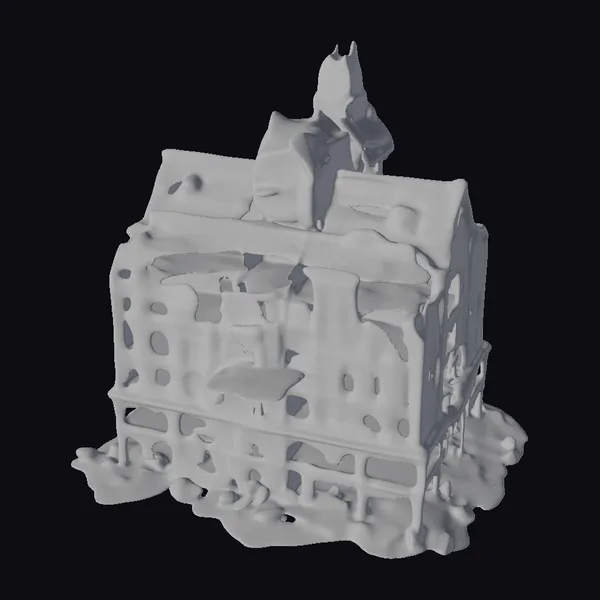 Perched precariously on a base of uneven ground, the abandoned railway station model showcases intricate details such as broken windows, a partially collapsed roof, and a crumbling facade. The gray stone texture, complete with cracks and worn surfaces, invites the imagination to fill in the stories of its past. Ideal for projects requiring a sense of nostalgia or abandonment, this model can be used in games, 3D printing, VR/AR experiences, animations, or architectural designs to add a layer of realism and depth.
