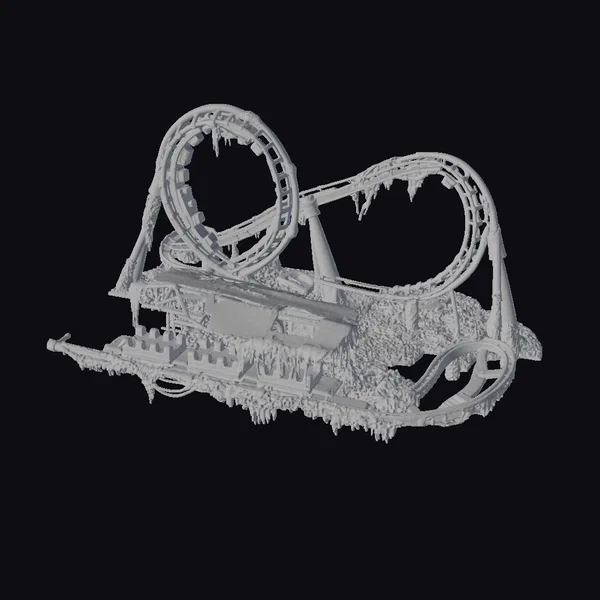 Imagine a once-thrilling roller coaster now reclaimed by nature. This model showcases a dilapidated coaster covered in moss and greenery, its metal beams rusting and decaying. The atmosphere is eerie and abandoned, perfect for adding a touch of neglect and despair to your projects.