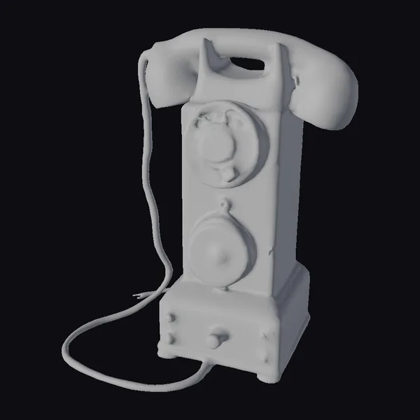 In a pose that suggests it’s been left untouched for decades, this vintage rotary phone showcases intricate details such as the circular dial with a beige label at its center, surrounded by a series of small holes. The phone’s body, a mix of gray and brown hues, exhibits significant wear, with visible rust spots and a generally worn appearance. The texture, rendered in high detail at 4k, captures every nuance of the phone’s aged surface, from the slight sheen on the dial to the frayed and kinked cord that trails from the base. The lighting accentuates the phone’s form, highlighting its curves and the metallic sheen of its components. This model is perfect for use in historical scenes, retro-themed projects, or any scenario where a touch of nostalgia is required. Its detailed and realistic appearance makes it suitable for games, 3D printing, VR/AR experiences, animation, and design projects.