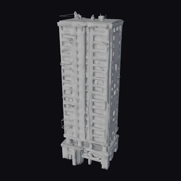 Perched against a neutral backdrop, the skyscraper’s core rises majestically, its concrete framework a testament to the raw power of urban construction. The building’s facade is a patchwork of open floors and half-built walls, with a dark, flat rooftop punctuated by a few scattered vents and antennae. As the eye travels down the structure, the exposed concrete skeleton gives way to a series of short, sturdy pillars that support the building’s base. The overall effect is one of rugged, industrial beauty, perfect for adding a touch of gritty realism to any 3D environment. Whether you’re working on a game, animation, or architectural visualization, this model is sure to bring a sense of drama and tension to your project.