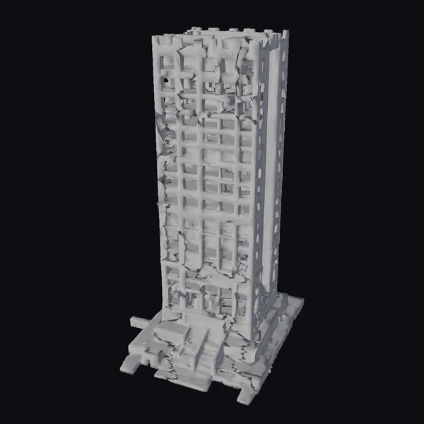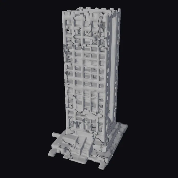 The Model “Abandoned Skyscraper Ruin” is also available upon request in many other 3D formats, such as 3MF, BLEND, FBX, OBJ, USDZ and others, making it easy to integrate into your project.
