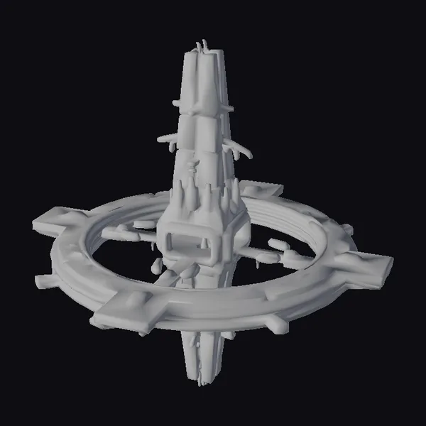 Perched atop a rugged, ring-like foundation, the central spire of this abandoned space station rises like a skeletal sentinel, its gray and orange hues evoking a sense of decay and neglect. The metallic surfaces are weathered, with visible signs of wear and tear, while the interior of the ring glows with a faint, eerie orange light. As a testament to its sci-fi heritage, this model boasts intricate details, from the cylindrical structures protruding from the central pillar to the industrial conduits snaking along its surface. Ideal for use in games, 3D printing, VR/AR experiences, animation projects, or architectural designs, this model invites you to explore the mysteries of a long-abandoned world.