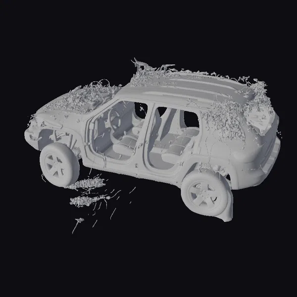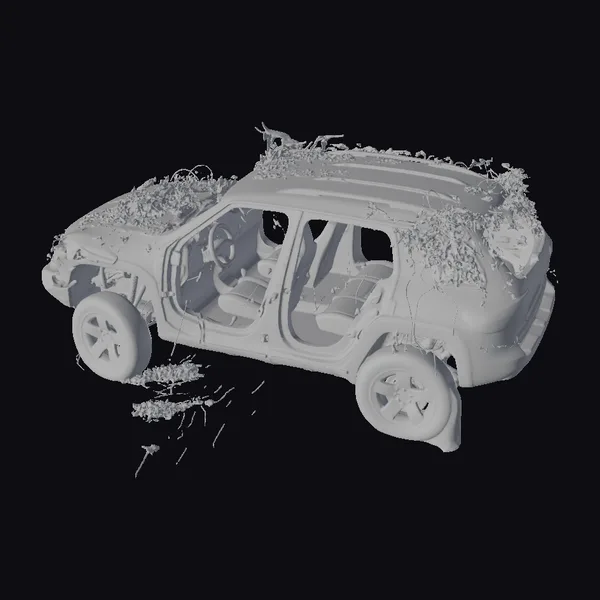 In a striking display of nature’s resilience, this 3D model captures an SUV in the advanced stages of decay. The vehicle’s white paint has faded, revealing a rusting undercarriage, while vines and debris claim the hood and roof as their own. The doors are missing, leaving the interior exposed to the elements. This model excels in projects requiring a sense of abandonment and neglect, perfect for scenes set in post-apocalyptic landscapes, or narratives exploring themes of decay and rebirth. Its detailed textures and realistic proportions make it an excellent choice for film, game, or architectural projects.