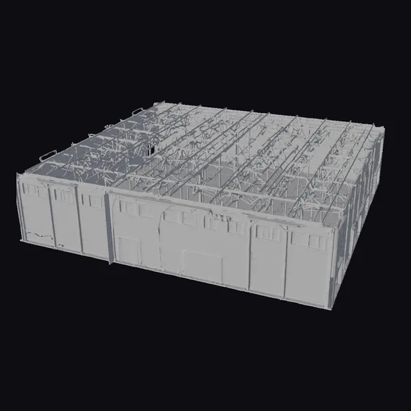 Perched in a state of perpetual abandonment, this warehouse interior presents a complex interplay of textures and shadows. The reinforced concrete walls, adorned with rows of small, grimy windows, stand as a testament to the passage of time. A maze of metal beams and supports, exposed to the elements, crisscross the ceiling, lending an air of industrial melancholy. The overall structure exudes a somber mood, inviting users to explore themes of decay, neglect, and the remnants of industrial prowess. Ideal for projects requiring a gritty, realistic backdrop, this model can enhance scenes in games, animations, and architectural visualizations.