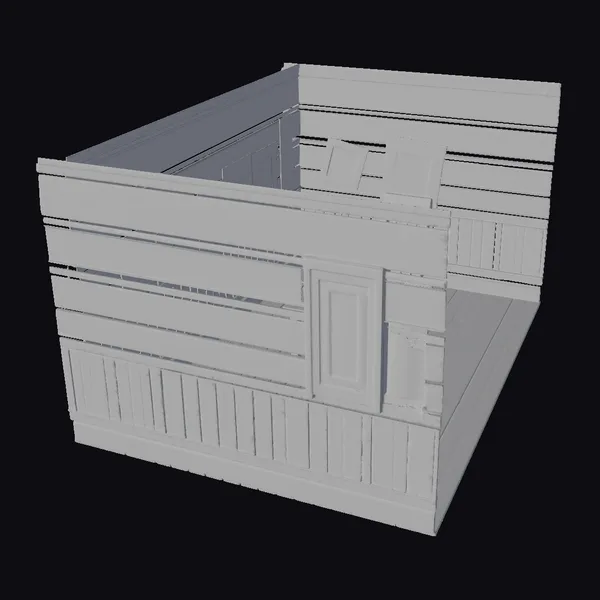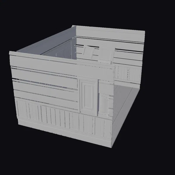 Detailed to capture the essence of neglect and abandonment, this wooden cabin lobby model presents a compact, low-poly design. The exterior walls are weathered to a dark, muted finish, with visible signs of wear and tear. A single door marks the entrance, while the interior space is largely open, inviting users to populate it with their own narrative. The model’s low-poly construction ensures it is game-ready, with a polygon count under 20,000, making it suitable for use in Roblox or similar platforms. Textures and lighting are optimized for a horror game aesthetic, perfect for environments requiring a creepy, abandoned feel.