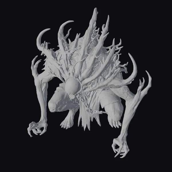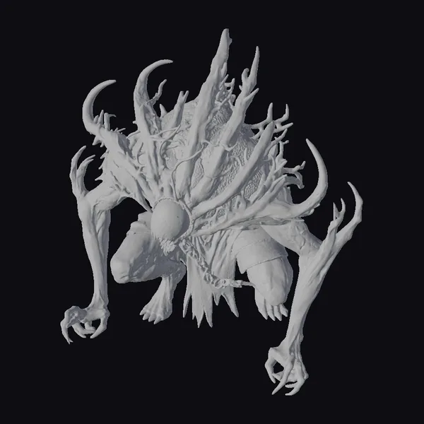 Perched in a crouched position, this slime creature seems poised to pounce, its body a grotesque amalgamation of slimy, organic matter. The bulbous core of its form pulsates with an eerie glow, while long, spindly limbs and thorn-like protrusions give it an unnatural, nightmarish appearance. The creature’s ‘head’ is a mass of writhing tendrils, ending in a maw that seems capable of consuming everything in its path. Its texture appears slick and slimy, reflecting light in a way that suggests a constantly shifting, amoeba-like form. This creature would be perfect for adding a touch of dark fantasy horror to games, animations, or 3D prints. Its unique design and menacing posture make it an excellent choice for projects requiring a terrifying, otherworldly creature.