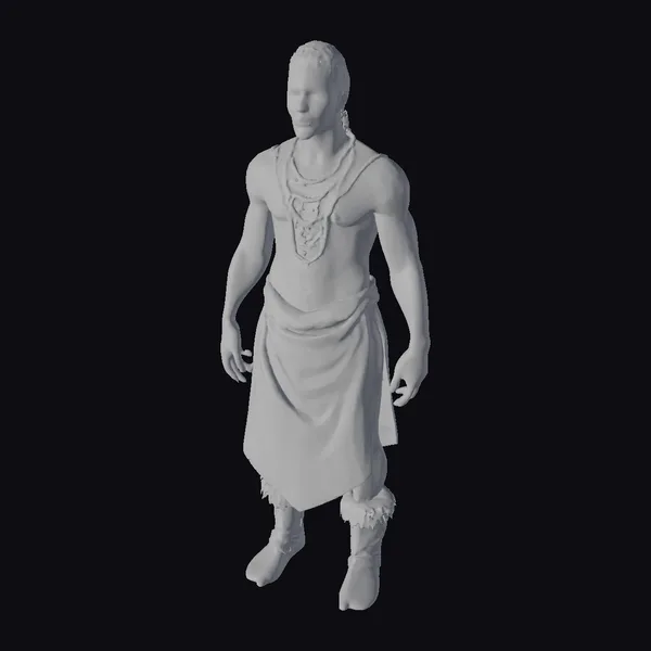Standing with a gentle poise, this 3D model of an Aboriginal man is meticulously crafted to showcase traditional attire and adornments. The red cloth wrapped around his waist flows elegantly, while the multiple necklaces add a touch of cultural significance. The fur-trimmed leg wraps and bare feet ground the model in a sense of realism. The realistic style and detailed textures ensure that the model looks lifelike, making it perfect for projects that require an authentic representation of indigenous cultures. Whether for educational purposes, cultural projects, or artistic endeavors, this model serves as a respectful and detailed representation.