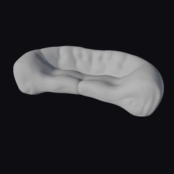 Perched on a foundation of warm, earthy tones, the couch’s base morphs into fluid, wave-like patterns that contrast beautifully with the cool, blue leather upholstery. The tufted design on the seat adds a touch of classic elegance, while the overall curved silhouette offers a futuristic appeal. Crafted with meticulous attention to detail, this model excels in various applications, from game environments and animations to architectural visualizations and interior design projects. Its unique aesthetic ensures it stands out in any setting, making it a versatile asset for creators seeking to infuse their work with a dash of creativity.