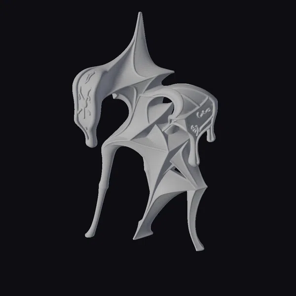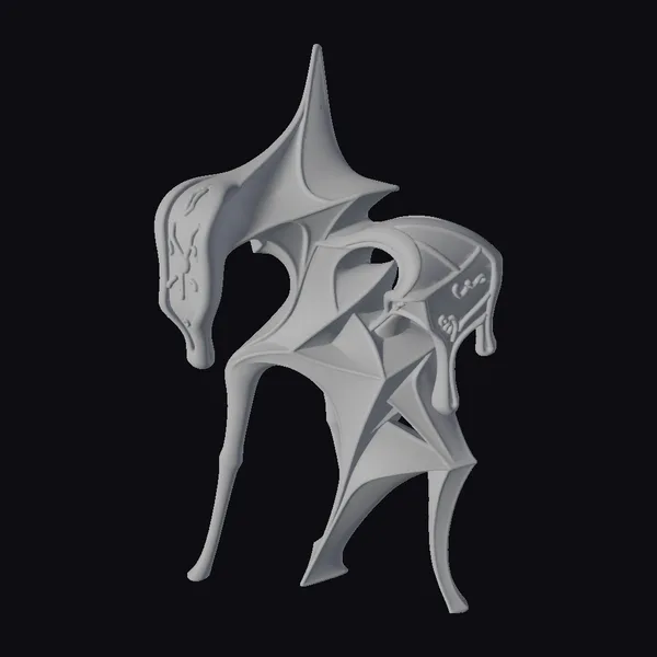 Detailed examination reveals a complex interplay of curved and pointed elements, with the bronze material expertly rendered to showcase a range of textures, from smooth, flowing sections to more defined, geometric details. The abstract sculpture’s pose suggests movement and fluidity, as if the piece is in the process of morphing into a new form. The lighting accentuates the bronze’s warm tones, highlighting the intricate details and adding depth to the overall design. This model is perfect for use in artistic projects, 3D printing, virtual reality experiences, or as a decorative element in architectural visualizations and game environments.
