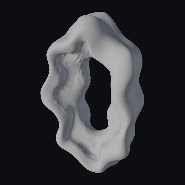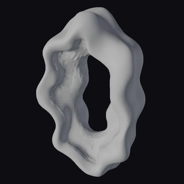 This stunning abstract sculpture presents a complex, geometric form that appears to be a portal or archway. The outer surface is a smooth, glossy gray, while the inner structure features a textured, metallic finish. The model’s intricate details and organic shape evoke a sense of otherworldliness, as if it’s a gateway to another dimension. The contrast between the smooth exterior and rough interior adds depth and visual interest. This model would be perfect for use in 3D rendering, animation, or 3D printing projects, particularly in the realms of art, design, and science fiction.