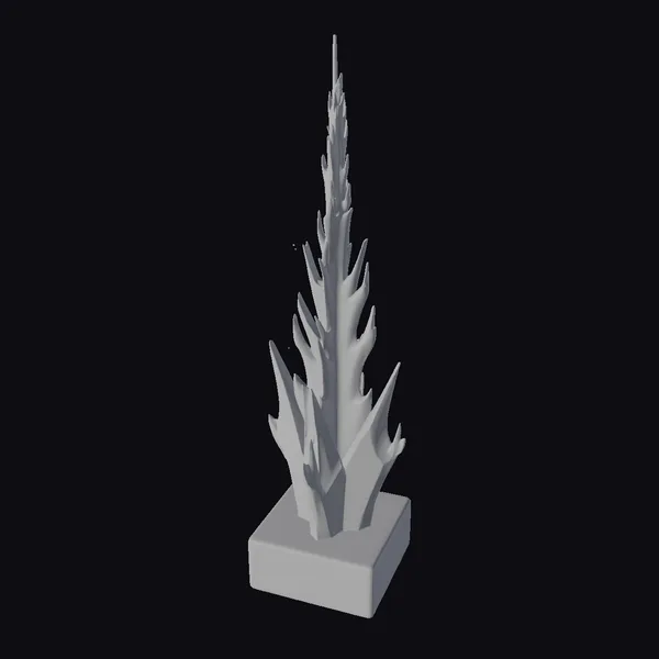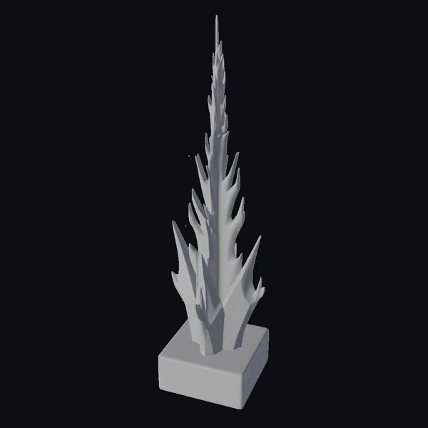This abstract spire sculpture boasts a dynamic, lightning-inspired design that commands attention. Its metallic surface gleams with a subtle sheen, while its jagged, irregular shape adds a touch of avant-garde sophistication. Perched atop a sturdy dark wood base, this piece seems to defy gravity, its sharp, ascending lines evoking a sense of energy and movement. Ideal for designers, artists, and anyone looking to add a dash of modern flair to their environment, this model is perfect for 3D printing, architectural visualizations, or as a unique decorative piece. Its versatility makes it suitable for various applications, from game development and animation to interior design and conceptual art projects.