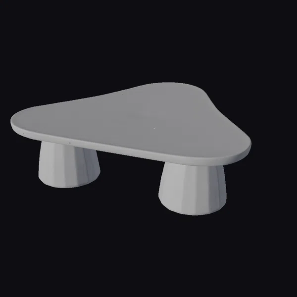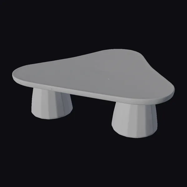 Crafted with meticulous attention to detail, this abstract wooden coffee table features a smooth, curved surface with a rich, honey-brown texture that invites touch. The two white, distressed cylindrical legs provide a striking contrast, adding an industrial-chic vibe to the overall design. Perfect for those who appreciate modern, minimalist aesthetics, this table is ideal for use in 3D rendering projects, architectural visualizations, or as a stylish prop in animations and games. Its unique design makes it a versatile piece that can complement a variety of interior settings.