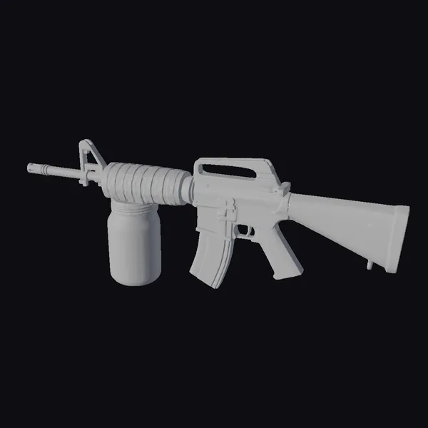 Detailed with precision, the acid rifle boasts a sturdy gray body complemented by a vibrant green bottle filled with acid, and a yellow magazine. Its futuristic design, complete with a silencer and ergonomic grip, makes it a standout piece. The rifle’s metallic sheen and industrial details suggest a creation from a dystopian future. Ideal for game developers, 3D artists, and designers looking for unique sci-fi elements, this model can enhance scenes in games, animations, or virtual reality projects.