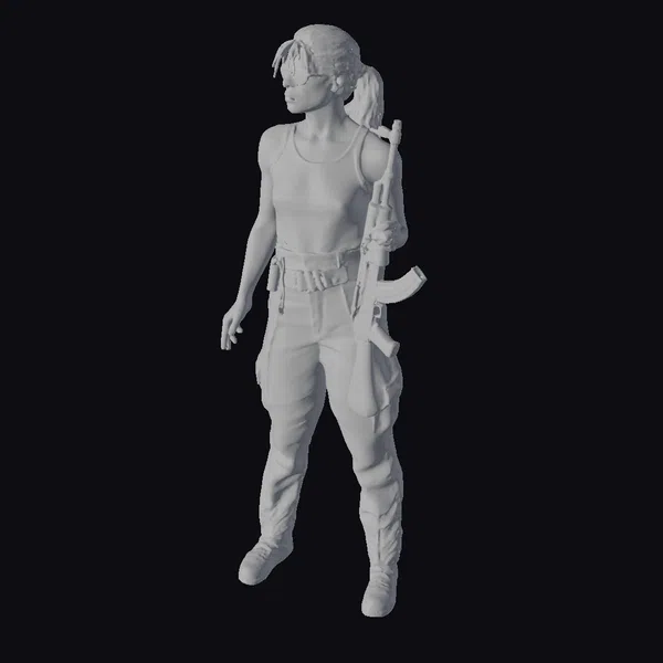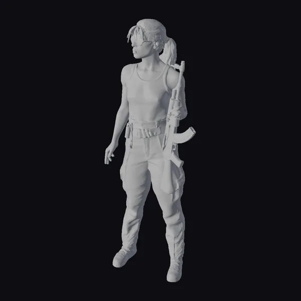 The Model “Action Heroine with Rifle” is also available upon request in many other 3D formats, such as 3MF, BLEND, FBX, OBJ, USDZ and others, making it easy to integrate into your project.