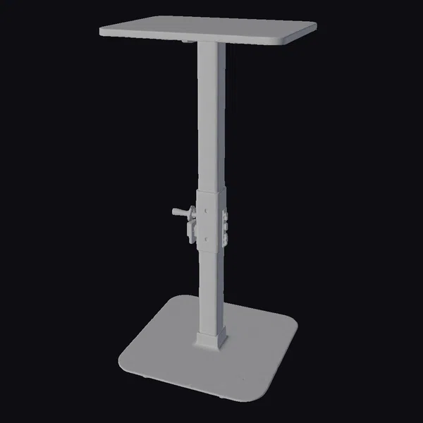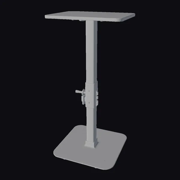 Detailed with precision, the adjustable desk stand features a sturdy blue base that provides stability, a long yellow pole that allows for height adjustments, and a broad red tabletop ready to hold various items. The blue metallic clamp adds an industrial touch, suggesting durability and functionality. The model showcases a modern aesthetic with clean lines and a simple yet effective design. Ideal for use in 3D modeling projects, animations, or architectural visualizations, this desk stand can add a touch of realism and color to any scene.