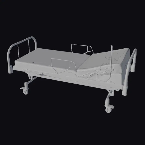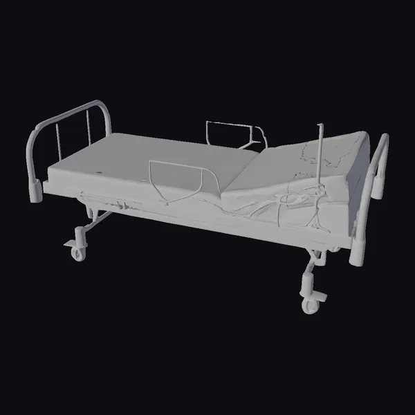 Positioned at a slight angle, the hospital bed’s grey metal frame gleams with a subtle sheen, its four caster wheels providing effortless mobility. The adjustable mattress support and rails add a touch of functionality, while the white mattress and crisp sheets evoke a sense of cleanliness. The bed’s metal frame features a smooth, rounded design, with a subtle texture that hints at its durable construction. Ideal for use in medical simulations, architectural visualizations, or 3D modeling projects, this detailed model brings a sense of realism to any scene. Whether you’re creating a hospital environment, a medical training simulation, or an architectural visualization, this 3D model is the perfect addition.