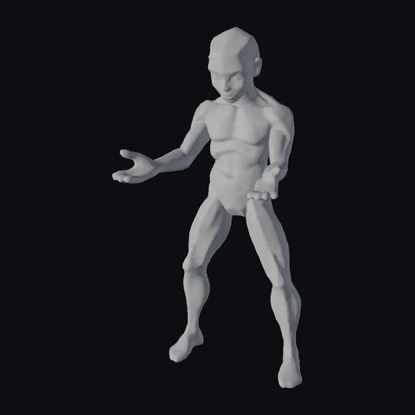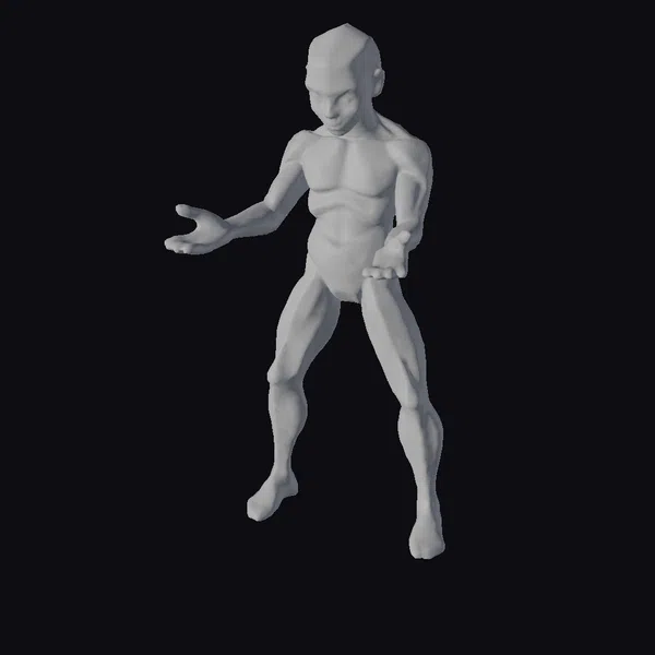 Detailed in every aspect, this character boasts a well-proportioned physique with defined muscles, standing tall with his feet shoulder-width apart. His facial features are subtly defined, with a gentle smile that suggests a friendly demeanor. The low-poly stylization gives him a unique, almost cartoonish appearance, making him perfect for projects that require a character with a modern, edgy look. The character’s pose, with one hand extended outward and the other resting near his hip, adds a dynamic element to his neutral stance. He can easily be integrated into various projects, including games, animations, and virtual reality experiences, thanks to his versatile design and neutral expression.