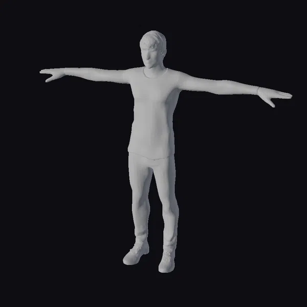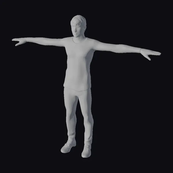 This 3D model presents a highly detailed adult male character in a T-pose, showcasing a realistic physique and facial structure. The model is attired in gray clothing consisting of a long-sleeved shirt, fitted pants, and shoes, which are meticulously textured to mimic real-world materials. The arms are outstretched, and the fingers are distinctly spaced apart, highlighting the model’s precision. The facial features are well-defined, contributing to the model’s realistic appearance. This model is versatile and can be used in various applications such as video games, 3D printing, virtual reality (VR), augmented reality (AR), animation, and design projects. Its high level of detail and realistic styling make it an excellent choice for projects requiring a lifelike human character.