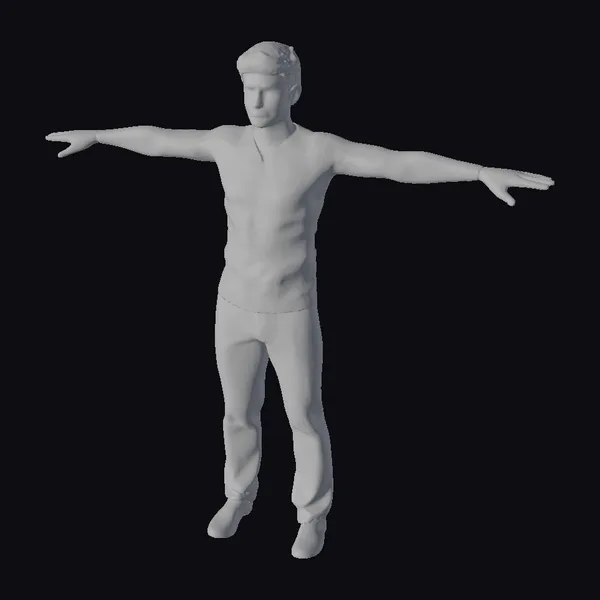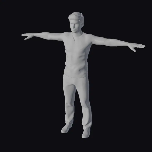 This 3D model presents a Caucasian adult male in a classic T-pose, showcasing a realistic and neutral stance. The figure stands with arms outstretched and legs slightly apart, dressed in a streamlined gray long-sleeve shirt and matching pants. The facial features are meticulously crafted, boasting a natural and lifelike appearance. The model’s texture and lighting are finely tuned, creating a sense of depth and realism. The simplicity of the outfit and the neutral background make this model versatile for various applications, including games, 3D printing, VR/AR experiences, animation, and design projects. The model’s high level of detail, especially in the face and hands, makes it suitable for projects requiring a realistic human character.