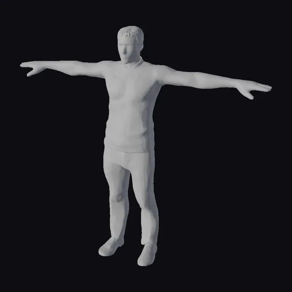 Detailed with precision, this high-quality 3D model of an adult male is posed in a T-pose, showcasing his physique with arms outstretched and legs shoulder-width apart. His facial features are subtly defined, with short brown hair and a gentle expression. The model is dressed in a light blue long-sleeve sweater, dark gray pants, and black shoes, offering a clean and neutral appearance. The realistic style makes him suitable for a wide range of uses, including game development, animation projects, virtual reality experiences, and architectural visualizations. The model’s high level of detail, especially in the face and hands, ensures a lifelike representation that can seamlessly integrate into various digital environments.