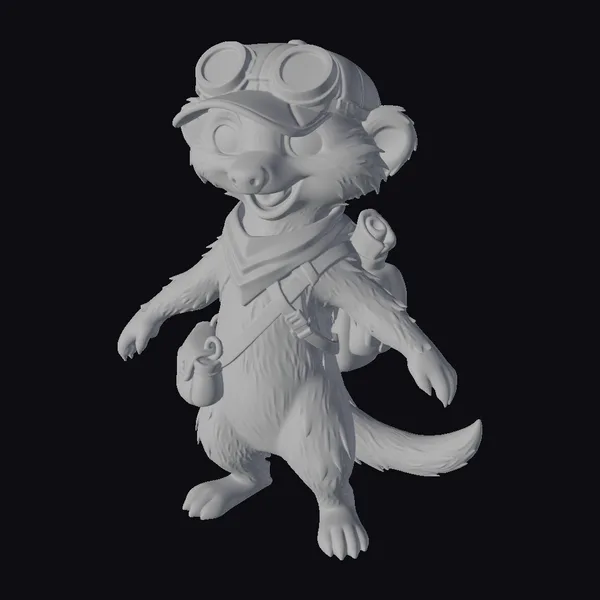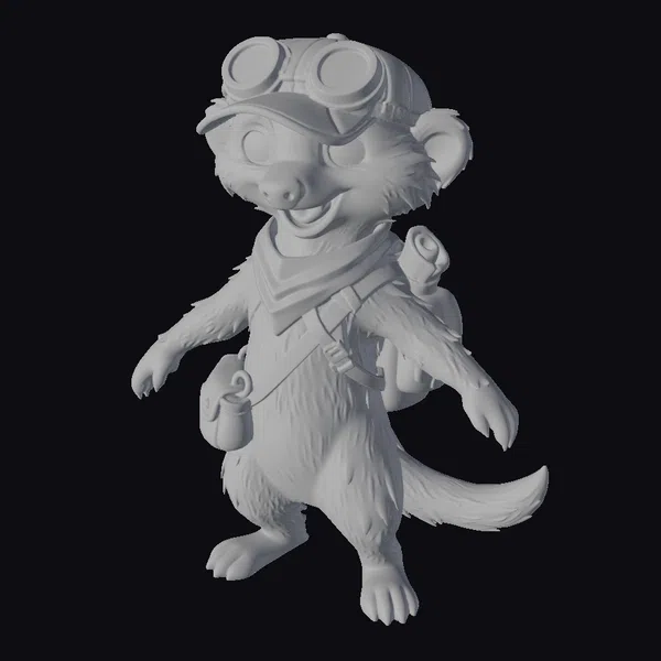 Standing on its hind legs with a joyful demeanor, this cartoon meerkat is meticulously detailed with a fluffy texture, bright eyes, and a playful smile. The green hat adorned with goggles and a red bandana adds a touch of whimsy, while the brown backpack and pouch hint at tales of adventure. Its pose, with arms outstretched and tail curled, invites you into a world of fantasy and exploration. Ideal for animations, games, or as a unique decorative piece, this meerkat model brings a burst of energy and curiosity to any project.
