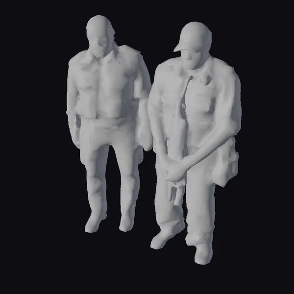 The Model “African Police Officers Arrest” is also available upon request in many other 3D formats, such as 3MF, BLEND, FBX, OBJ, USDZ and others, making it easy to integrate into your project.