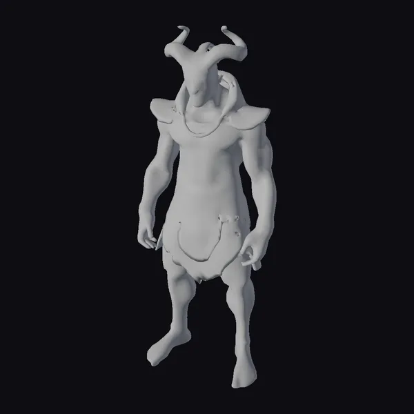Detailed with precision, this character model showcases a muscular African warrior dressed in a traditional yet stylish tribal costume. The headdress, with its two prominent horns, draws the eye upwards, while the layered necklaces and colorful outfit highlight the rich cultural heritage and attention to detail. The pose, with feet shoulder-width apart, conveys a sense of readiness and power. Ideal for projects requiring a strong, culturally inspired character, such as animations, games, or designs seeking a unique, stylized human element.