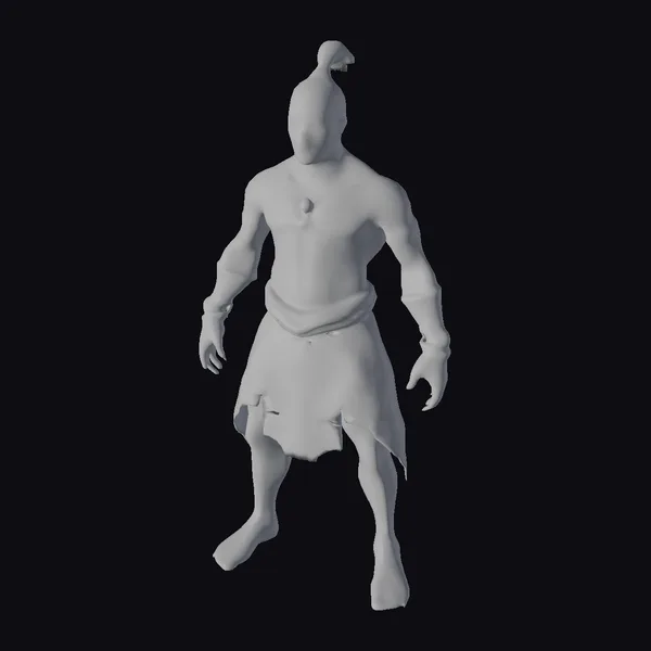 This meticulously crafted 3D model presents a detailed African Zulu warrior in a T-pose, highlighting his robust physique and traditional attire. The warrior’s dark skin has a lifelike texture, and his shaved head is topped with a single, upright feather adding to his imposing presence. He wears a necklace and arm bands made of beads and leather, which contrast with the torn, tanned leather skirt. The skirt is adorned with a piece of white fur, adding a touch of texture and color. His arms are relaxed by his sides, with a slight curvature to his fingers, suggesting a moment of calm before action. This model is perfect for projects requiring a realistic and culturally inspired character, suitable for use in games, animation, 3D printing, and virtual reality applications.