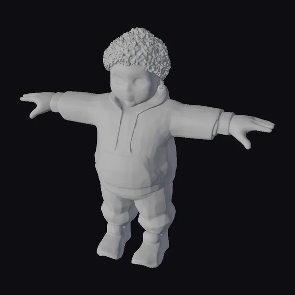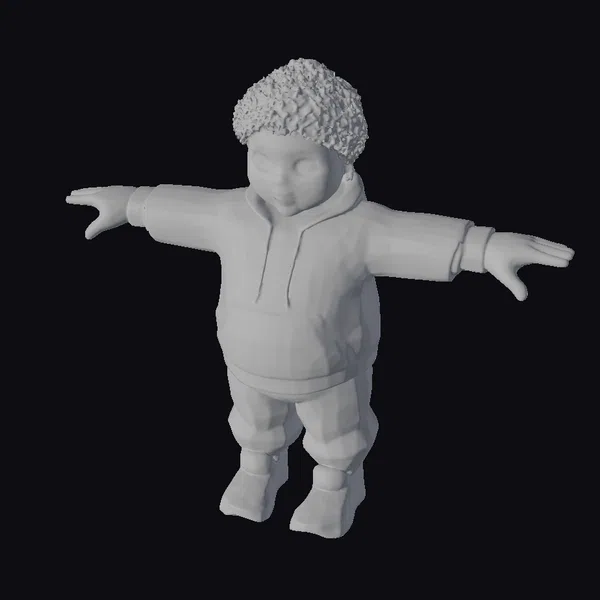 Standing tall with a heroic build, this stylized 3D model of an Afro-Japanese young man captures the essence of urban streetwear and athleticism. His curly afro and expressive facial features are complemented by a brown hoodie covered in white graffiti, symbolizing his passion for art. The model’s blue jeans and green sneakers add to his agile and youthful appearance. With arms outstretched, he seems to be embracing the world around him. This model is perfect for projects requiring a dynamic, modern character, such as animations, games, or virtual reality experiences.