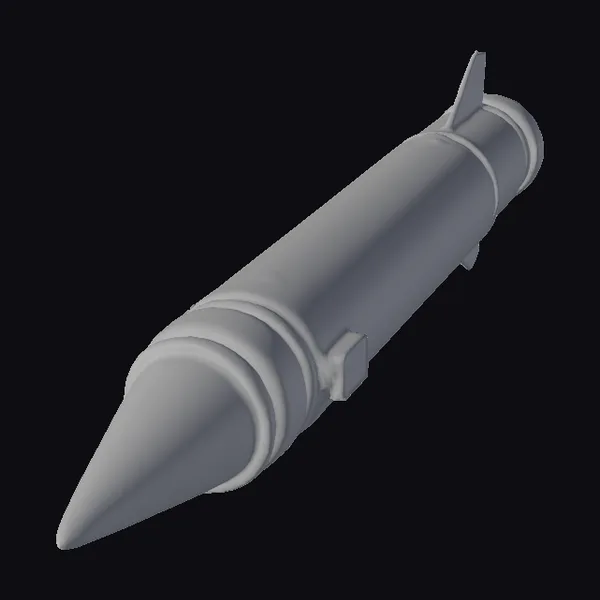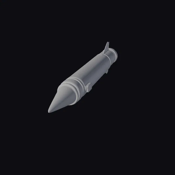 Perched dynamically on its fins, the rocket projectile showcases a meticulously detailed surface, replete with rusty hues and metallic sheen. The conical nose, tapering to a sharp point, is accentuated by encircling ridges, while the base fins ensure stability in flight. This model is perfect for projects requiring industrial or military authenticity, such as game development, 3D printing, VR/AR experiences, or architectural visualizations. Its realistic aesthetic makes it an asset for designers and creators seeking to infuse their work with a sense of realism and grit.