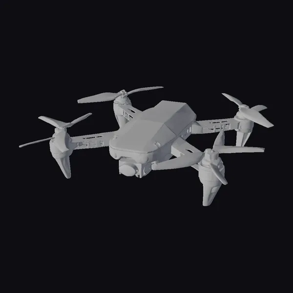In a dynamic pose, showcasing its readiness for flight, this agile tracker drone boasts a streamlined body with four rotors positioned at each corner, each adorned with sleek blue lights that add to its futuristic appeal. The drone’s main body is a matte gray, complemented by darker gray and blue accents that highlight its advanced features, including a high-resolution camera mounted underneath. Its design screams of cutting-edge technology, perfect for use in games, animations, or architectural visualizations where a modern, high-tech feel is desired. The intricate details, from the mesh patterns on the arms to the glowing blue circles on the front, enhance its realistic and engaging appearance.