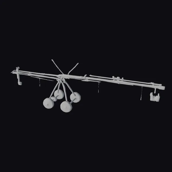Positioned dynamically against a clean backdrop, the agricultural pivot irrigation system showcases its impressive metal framework, complete with rotating wheels and suspension components. The model’s detailed structure highlights its mechanical sophistication, from the central pivot point to the extended arms and wheel assemblies. Textured surfaces and realistic proportions underscore its practical application in large-scale farming. Ideal for use in agricultural simulations, architectural visualizations, or educational materials, this model brings a touch of realism to various projects, including games, 3D printing, VR/AR experiences, and animation.