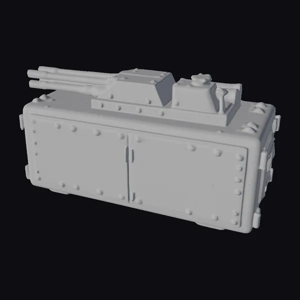 In a detailed display of industrial and military prowess, this 3D model showcases two aircraft cannons nestled within a sturdy, metallic box, complete with a retractable turret on top. The box’s exterior is weathered, with signs of rust and wear, indicating it’s been through battles or extensive use. The cannons are meticulously designed, with visible ammunition and mechanical components. The turret on top adds a dynamic element, suggesting mobility and tactical advantage. This model is perfect for projects requiring a blend of sci-fi and military elements, such as game environments, animations, or architectural designs that incorporate industrial machinery. Its detailed textures and realistic proportions make it a valuable asset for creators looking to add authenticity to their work.