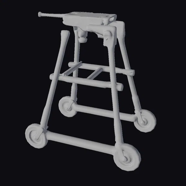 Crafted with meticulous attention to detail, this 3D model showcases a landing gear stand in a realistic, gray metallic finish. The framework is composed of multiple interconnected bars and beams, providing stability and support. Four wheels are strategically positioned to facilitate easy movement. The model’s rigged structure allows for flexibility and adjustment, making it suitable for various applications in game development, architectural visualization, and product design. Its industrial aesthetic and mechanical details make it an excellent addition to any project requiring a touch of realism and functionality.