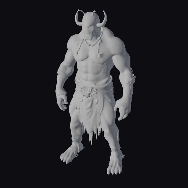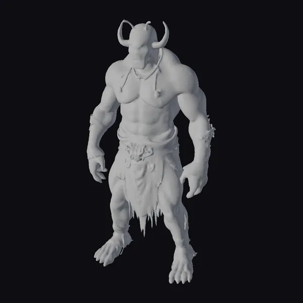 Standing tall with a commanding presence, this muscular albino beast is a sight to behold. Its blue-tinged skin glistens under the light, complemented by sharp horns that crown its head. Adorned in a mix of tattered leather and rugged metal armor, the beast exudes a fearsome aura. Satanic tattoos dance across its body, adding to its dark mystique. The piercing yellow glow of its eyes seems to cut through darkness, making it a compelling addition to any game or project in need of a formidable creature. Whether for a dark fantasy game, a horror scene, or an animated film, this model is game-ready and versatile.