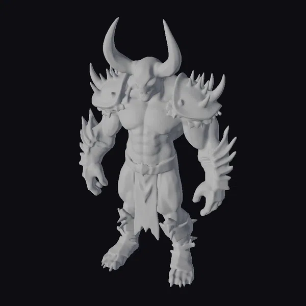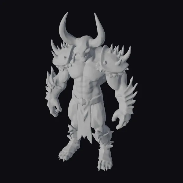 Gaze upon the intimidating albino demon, its muscular physique radiating an aura of fear. Sporting menacing horns and razor-sharp spikes on its shoulder pads, this creature exudes a sense of raw power. Its red skin glistens with a subtle sheen, accentuating its formidable presence.