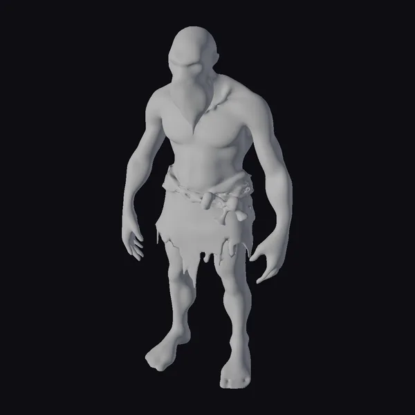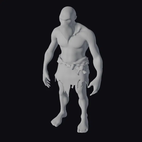 Standing in an A-pose, this highly detailed 3D model of an albino old man barbarian commands attention with its symmetrical body and rugged features. The character’s albino appearance is striking, with a bald head, white beard, and pale skin that contrasts with his red eyes. He wears a tattered loincloth and a belt made of rough, braided material, adding to his barbarian appearance. The model’s muscular physique and stringy muscles are well-defined, giving him a powerful and intimidating presence. The level of detail in this model makes it suitable for use in various applications, including games, animation, and 3D printing. Its realistic style and detailed features bring this fantasy creature to life.