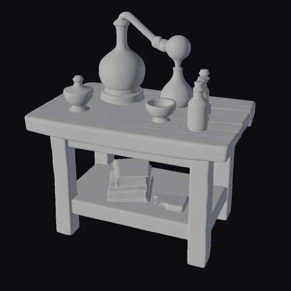 The Model “Alchemist’s Workbench Setup” is also available upon request in many other 3D formats, such as 3MF, BLEND, FBX, OBJ, USDZ and others, making it easy to integrate into your project.