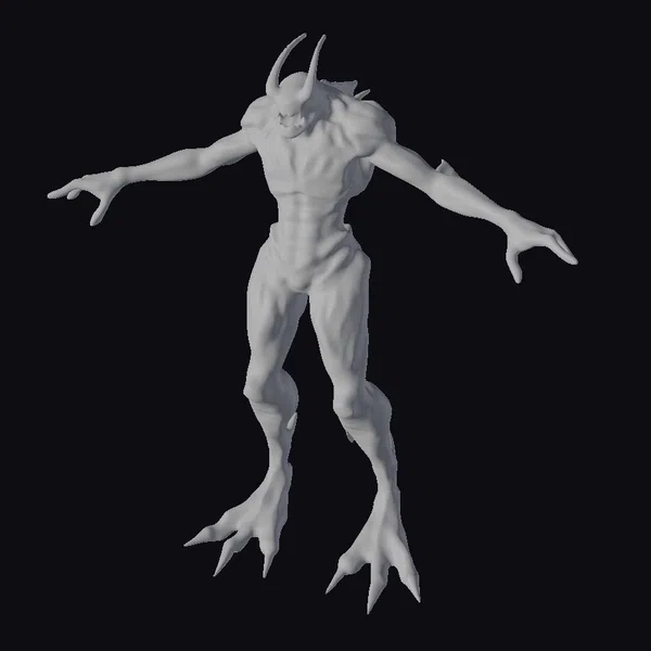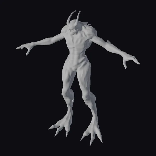 This intricately detailed 3D model of an alien creature showcases a blend of biomechanical and sci-fi elements. The creature stands with its arms outstretched, revealing sharp, claw-like fingers. Its body is covered in a mix of dark, metallic armor and organic, almost insectoid features, including a distinctive headpiece with antennae-like protrusions. The model’s textures and lighting emphasize its menacing appearance, making it perfect for use in games, animations, or as a design reference. Its unique design could inspire a variety of characters or creatures in sci-fi and fantasy projects.