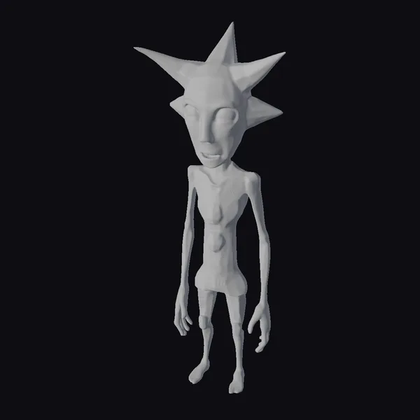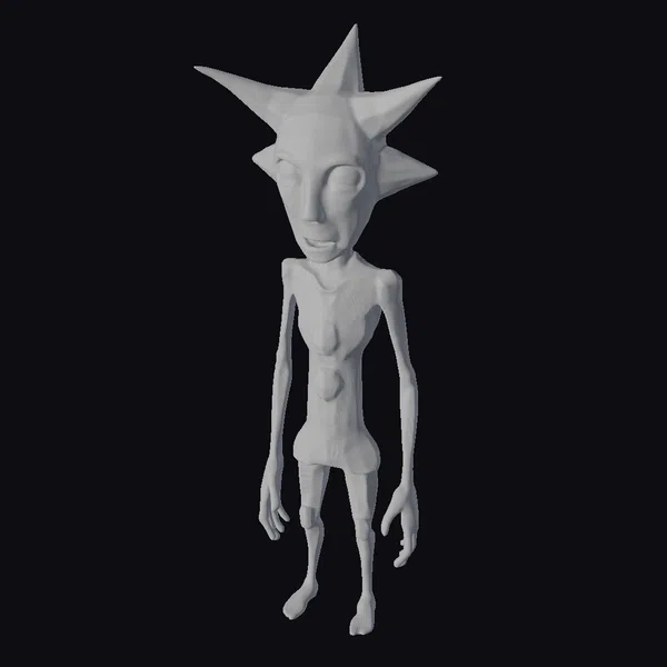 This stylized alien being stands out with its striking star-shaped head, a kaleidoscope of blue and red colors that seem to shift in the light. The creature’s slender body, with elongated limbs and torso, is a masterful blend of blue, red, and gray textures, giving it a truly extraterrestrial appearance. The model’s unique features, such as its spiky head and expressive facial structure, make it an ideal choice for projects requiring a futuristic or sci-fi character. Whether you’re working on a game, animation, or VR experience, this alien being is sure to captivate your audience. Its versatility allows it to be used in various design contexts, from concept art to 3D printing.